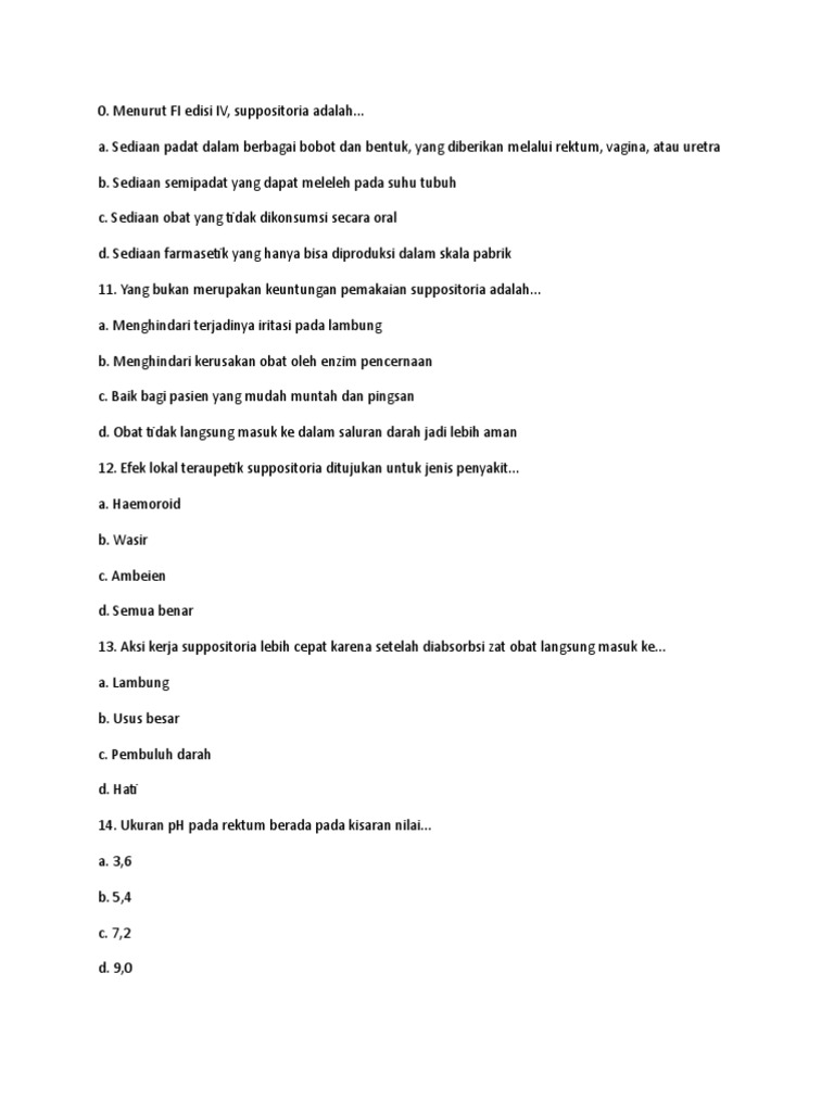 Soal pilihan ganda suppositoria dan jawabannya. Maybe you would like to learn more about one of these? Check spelling or type a new query. We did not find results for: