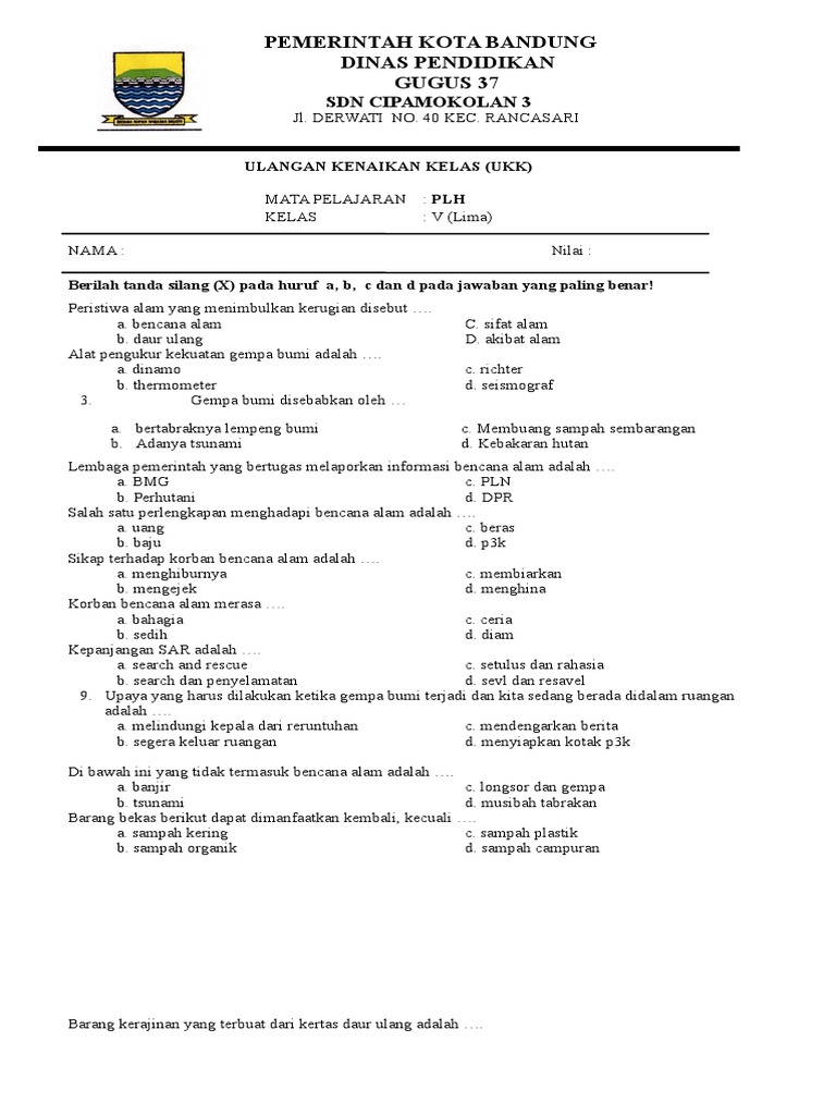 Bocoran soal uts sd kelas 5 semester lengkap dengan perangkat lunak doc dan pdf.